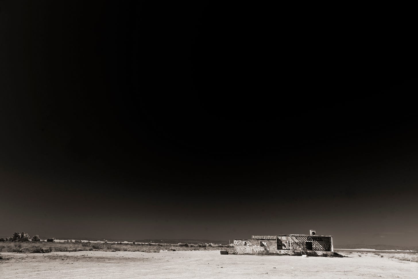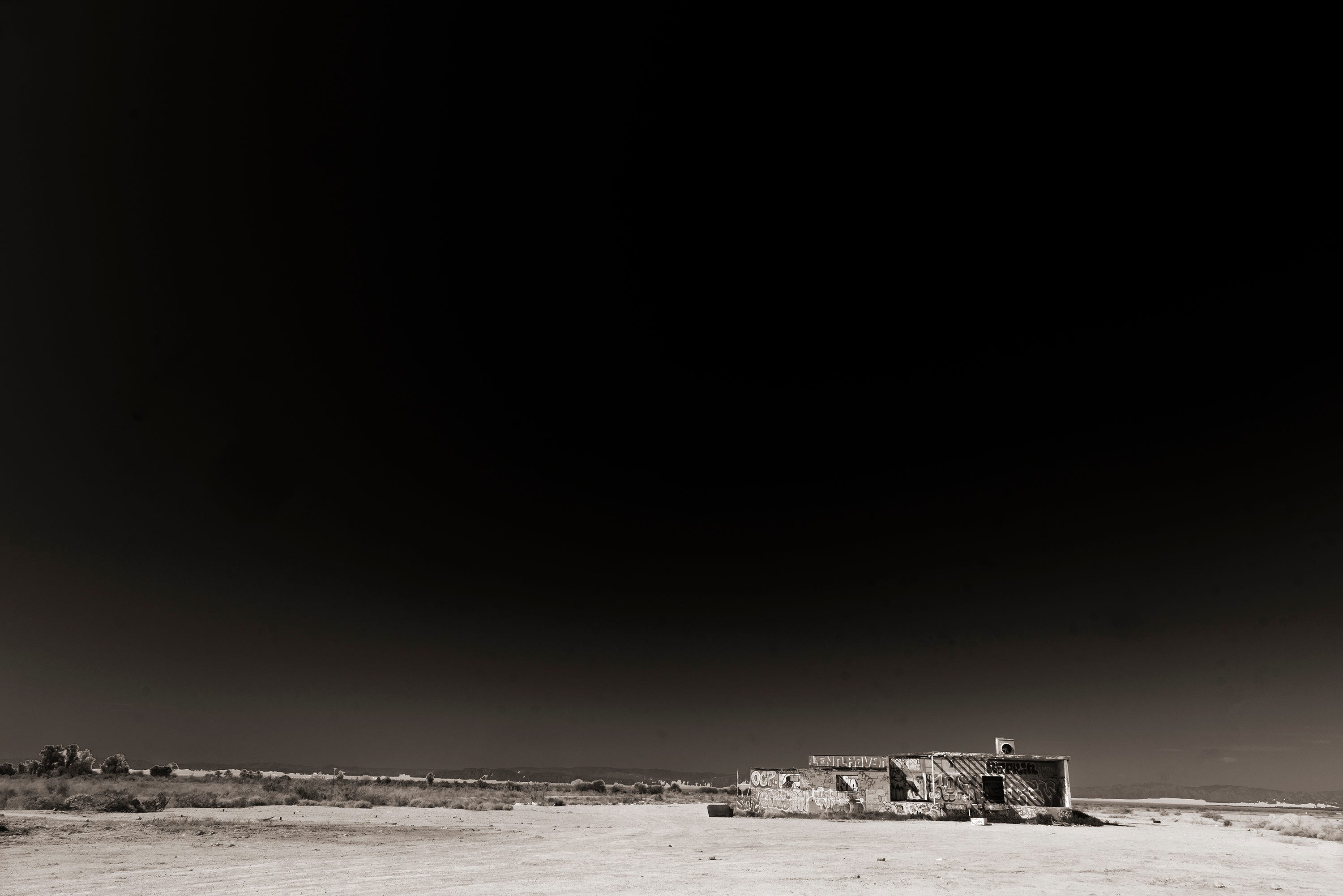 Somehow the scale of an empty warehouse sitting on 10 acres of graded sand is more desolate than an empty house or sagging trailer. There’s a rich loneliness conveyed by the scene. There’s an implied history of a bustling place where produce, my assumption, was packed, shipped and dozens of workers were employed.