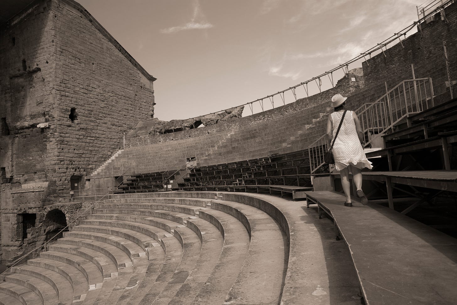 Theatre d'Orange Roman theatre and associated buildings are wonders that you captured beautifully, Steve, including the woman in motion with hat and flouncy dress on one of the steps. Each image begins a story, not yet complete.